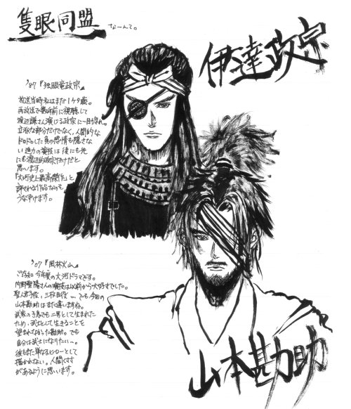『風林火山』の勘助と『独眼竜~』の政宗とを比べてみると隻眼というポイントだけじゃなくて、人間の描かれ方がちょっと似てる気がします。性格にせよ、出来事にせよ、必ずしもいいことばかりを強調しないんですよ。