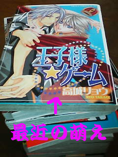 ↑ちなみに写真は高城リョウさんの『王子様ゲーム』。続編『王様ゲーム』もちゃんとこのすぐ下にあったりします。(ちなみに写真の本の山はみんなBL本。ハイ、そこ引かない!)