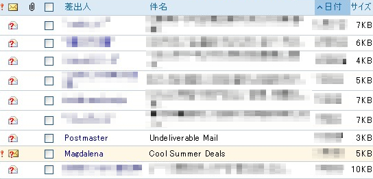 愛用しているいくつかのフリーメールのウチの一つなんですが、差出人がPostmasterと書かれているものとMagdalenaとなっているものが問題のメール。